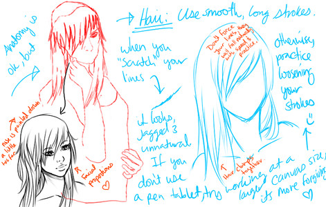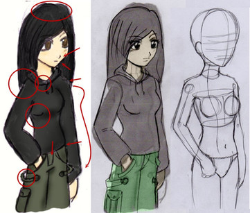 I was doodling today and thinking about all the tips I've picked up over the years. I'm still learning, of course, but I thought, "if I'd been told all these things right at the start, would I have improved faster?" So I decided to throw together a little tutorial summing up the major points I've learned by studying what other artists do. I'm no expert, but I did my best.I drew it entirely on Paint Shop Pro 9 with my tablet, no reference. I didn't bother with detail and pretty lines and stuff, but I think it conveys my techniques pretty well. Hope it helps someone somewhere at least a little.