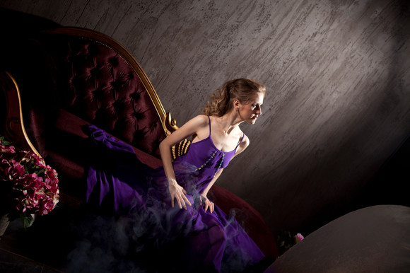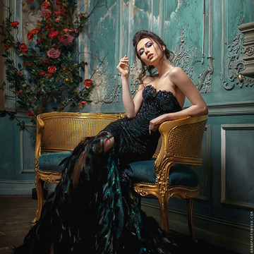 I love the backdrop of the walling to the lounge chair,but also how the models dress contrast's so vividly to the background.