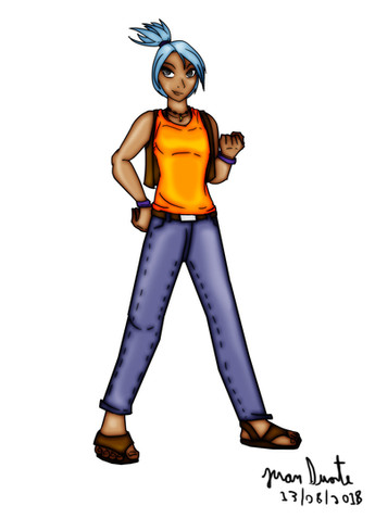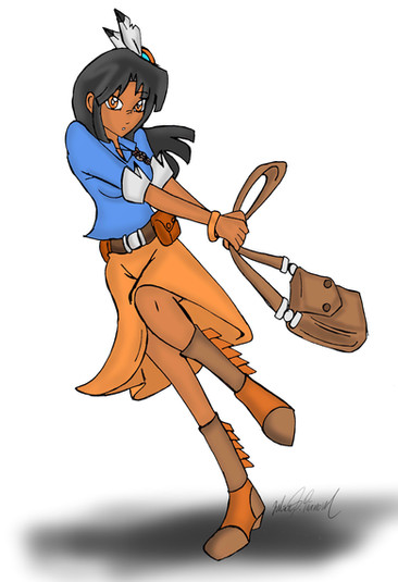 Just a quick sketch. I was trying out a different style. I really like this style! There's still a few probelms with the pic, like that the fact that the eyes are off balance and I can't shade hair. I still like it.Done in Painter.