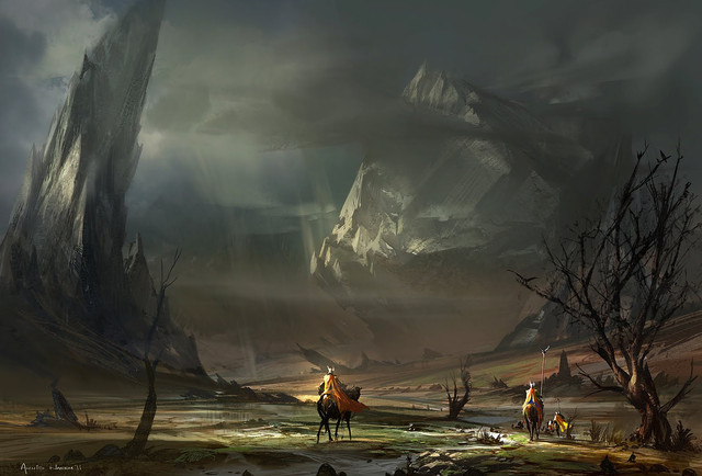 Really great colours, especially on the bird creature. Love the armour too! Great work