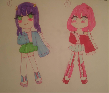 A character of mine (The pink one) And my senpai xDThey're Danganronpa OCs , The left is Yamada Taro , shsl information broker
