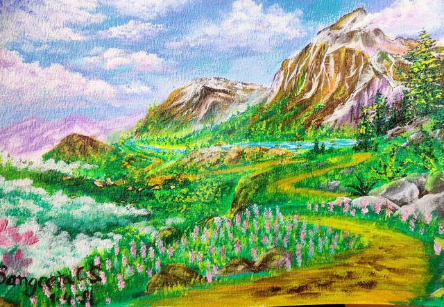 I have to say that I have been watching you even before I ever had an a account on deviantart and your paintings are all so rich and vivid in color and the landscapes are so beautiful and somewhat magical as well! The way you can tell there are flowers in different groups spread throughout the feet of the mountains is amazing and the way you painted different kinds individually is absolutely astounding in this particular painting. keep on painting I will continue to watch your amazing work being posted!!!!