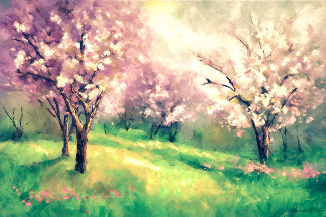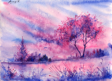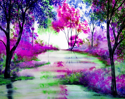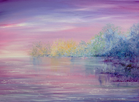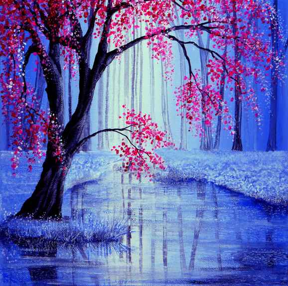 The colors are so soft and warm and give you a mysterious feeling like a fairy might just fly out or a unicorn might walk by any minute. Really beautiful. I always enjoy looking at your paintings. You have such a unique way to portray things using colors and styles that make things look magical.