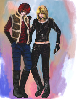 Awesome drawing! And Mello wearing Matt's clothes just looks like Kurt Cobain! xDDD