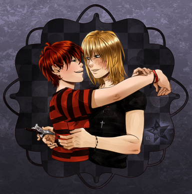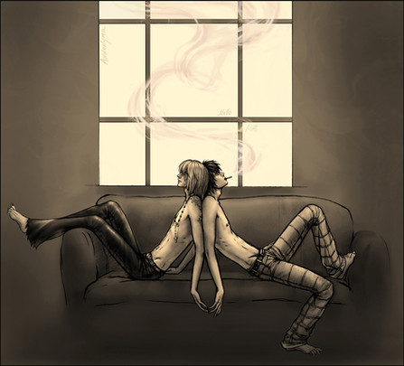 I really like the colouring, especially with the leather pants. Lol love their expressions, they obviously aren't comfortable. What fanfic was it?
