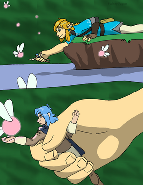 Bluebird had noticed Link seemed... Off that evening. He stared at the campfire, almost unblinking. For over an hour. She was getting worried. Bluebird clambered up the log he was sitting on, gently touching his leg to let him know she was there. He glanced down briefly at her before shifting his hand a bit. Allowing her to rest her head on one knuckle. "What's wrong?" she asked softly. Link took a deep, rattling breath before looking back at her. His eyes were glazed over, his breathing grew hitched. With his free hand, he answered her.'I... You remember what I told you about the Shrine of Resurrection, right? And my memories?' She nodded in confirmation. He'd told her. Amnesia. And some things could trigger him to recall just about anything from his past. A smell, taste, sound... Or certain objects and people. Some memories were good, others not so much. 'Well... I had a sister. Had. She...' Link stopped. Another rattling breath and he looked back at the fire. Bluebird felt him shaking. It wasn't difficult to piece it together.