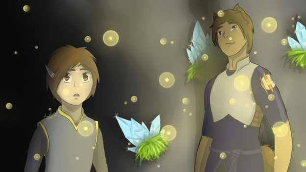 Bluebird woke with a little grumble of protest as she was nudged awake. She opened one eye to see Link leaning over her, with a big grin on his face. It was still dark out, and she gave him a tiny little growl before draping her arm over her face. "Link... It's the middle of the night, whaaaaat..." She peeked out at him to see his answer. 'I want to show you something, but we need to leave now to get there in time to see it. Put your Snowquill set on!' Bluebird weakly batted at him as he picked her up. She felt her Snowquill set being pressed into her hands before being set down again. Then Link disappeared out of the bedroom. With that, she got changed and met him outside. She was still rubbing the sleep from her eyes as Link plucked her up out of the snow. He merely chuckled as she reached over and grabbed onto his tunic. 'Alright alright, you can sleep on the way up. You can stop trying to stab me with your eyes now, little birdy~'Bluebird tucked herself into the front of his tunic, dozing as he climbed up Mount Lanayru. At some despicable hour. For some reason. Eventually, about an hour and a half into the climb, she woke again, on her terms this time. Link must have felt her move because his hand reached in and wrapped around her middle. Bluebird gently grabbed onto his hair as he, for some odd reason, chose to place her on the top of his head. 'Hold onto me! You'll see~' he signed to her. Bluebird grabbed two armfuls of his hair, and watched the world go by as he climbed up. After a while, he began climbing around giant pillars of blue ice. Link let her look at it for a minute before continuing onward. Then the wind picked up, and Link seemed to really speed up at that. What was happening? Finally he reached the summit. And he waited for a few more minutes. Then Bluebird saw something she'd never forget for as long as she lived.