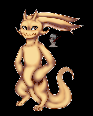 but then when I designed mine I shamefully ended up headcanoning him so much I don't even know anymore. He's kinda like a Meatball (aka my friend's Meta Knight depiction) version of Giegue. In other words, he's exaggerated in his personality. I even refer to him as Goopi half the time. I'm so lame. |D