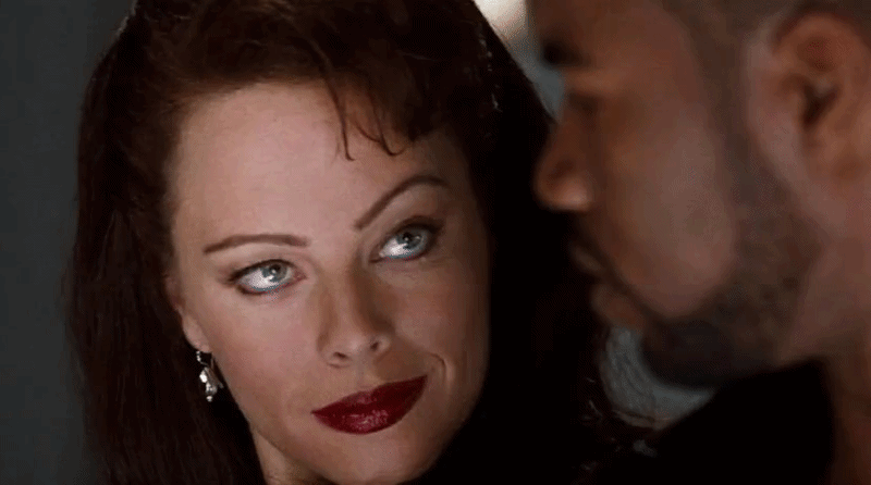 From Bordello of Blood, fun little B movie if you've never seen it. This is what I picture most of the time I write Jessica kissing. How she towers over the much shorter man and looms over as she closes in on him. Resulting in the man having to be in the more submissive position of having to raise his head to her. I've also written her having a bit of cartoonish tongue going deep into the guy's mouth because of course her kiss would be like nothing he could have ever felt before. Finally, the way she aggressively seals her lips onto his is exactly how Jessica would. The only differnce being Jessica's arms would be wrapped around him pulling his face to hers.Related content