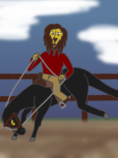"Honestly, ah have no idea what kinda bullcrap you're sayin'. But if you want to challenge me, then you'll have to ride your pet for a very hard 8 seconds. Deal?" In the end, it was obvious that the two riders would both agree to accept this challenge.