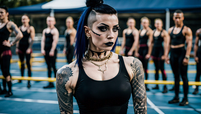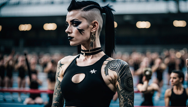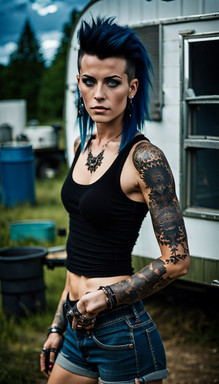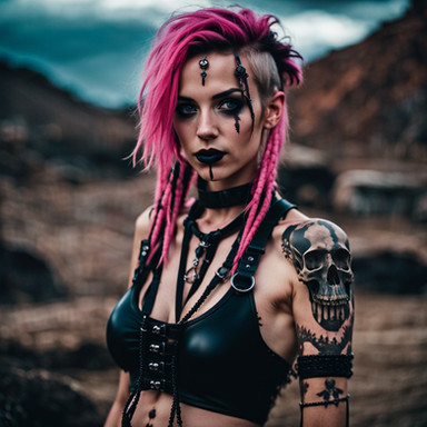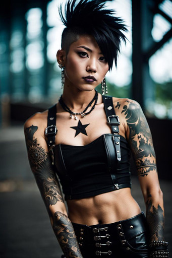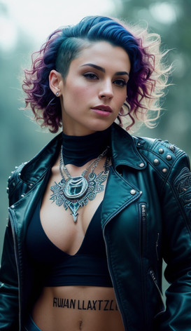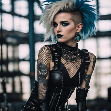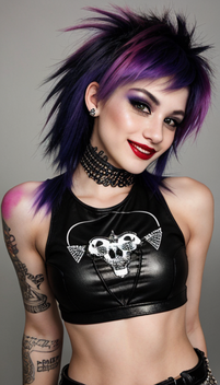 #leather #ai #dreamup #combination #dyedhair #mohawkhair #nativeamerican #nativeamericangirl #punkrocker #purplehair #tattoos #ai_art