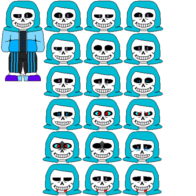 i decided id experiment a lil and i came up with the idea to make my first sprite sheet, while showing the many emotions of angelkeep in mind, angel, although he is NOT the oldest and has more than one brother, takes the role of sans in his au.