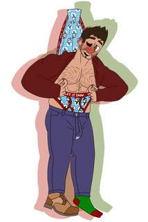 figured since i did one with his briefs i had to do it with some of his other pairs. featuring two pairs of boxers, one pair of boxer briefs, and one jockstrap.Βthe jockstrap he's wearing right now is something he had personally made upon getting to detective. it's one of his favorites, just below the police car briefs.