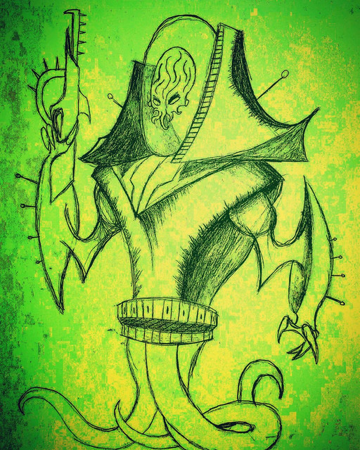 A mind is a terrible thing to flay.(Shading pen finally ran out of ink after starting the collar, so this tentacled horror is looking a little flat)