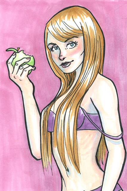 Part of my birthday collection of gratuitous, fanservice-y pinups.This example - a lady who seems concerned about the fanciness of her underwear.