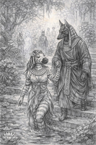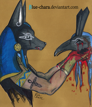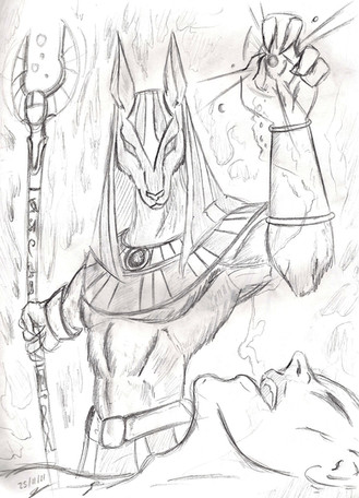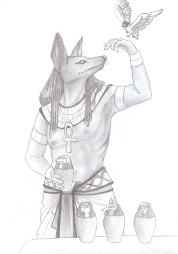 One more Egyptian mythology pictureProbably Anubis should have been slightly Β darker though