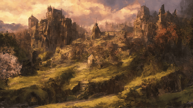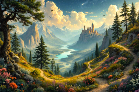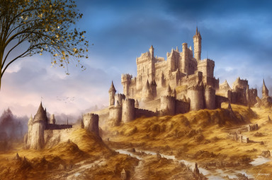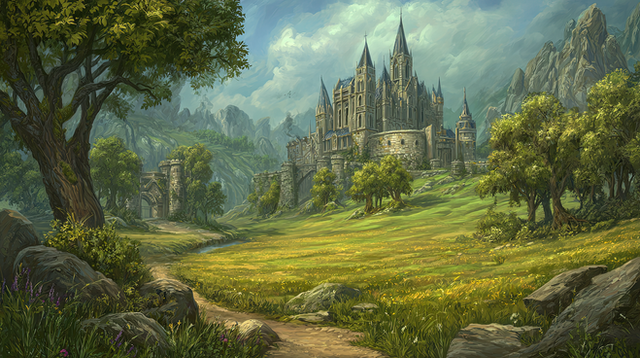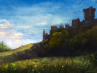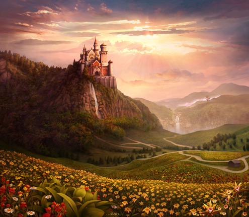 #castle #fantasy #flowers #hill #sunset