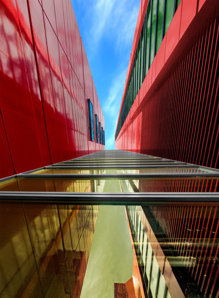 #architecture #bridge #cergy #france #lines #metal #paris #passage #perspective #pont #red #ride #rouge #structure #urban #anozer #anozercreation