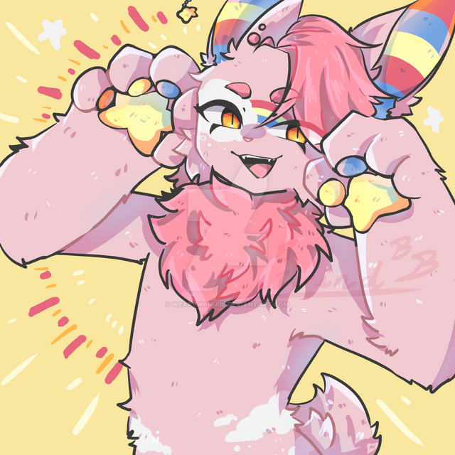 Draw the character above you for a furry server I joined.You guys might notice there's been some artstyle shifts lately. I've felt extremely free with binary brushes lately. I tried to use a slightly limited palette for this.