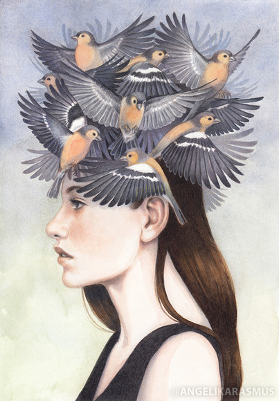 #feminine #figurative #girl #home #nest #pop #sparrow #sparrows #surrealism #woman #popsurrealism #birds