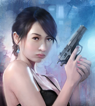 This is one of my favorites of yours! I love the detailing on the hand gun and on her jacket as well!She looks dangerous but classy.Very nice touches with the detailing. The calm, poised look on her face lends a hand to the scene of the pic.