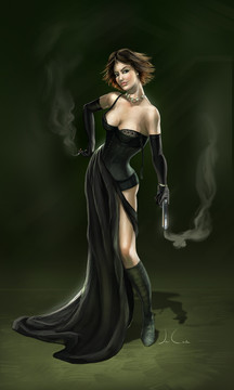 Wow! Really good mood in this piece, a simple pose but so much attitude emanating off the lady. Love the attention to detail, the dragon motifs on the jacket are also a very cool addition. Instant fav! Well done.