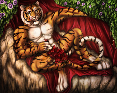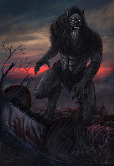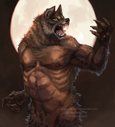 Nice work indeed, really love the gorgeous background you've made here - also interesting to see a more hairless werewolf from you. ^^ Love the pose and the atmosphere!