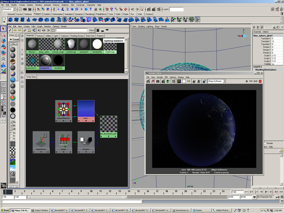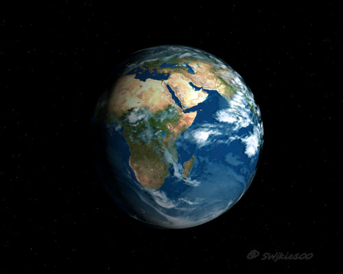 hi guys, just a render of a digital earth I had to make for a video i'm doing---it's a video about time, and i'm going to include some shots of earth reverting back to their (so-called) original state of Pangaea, as well as in the future when the polar ice caps melt and flood coastal areas. Nice, hi res rectangular (mercator) images of earth are a b* to find!! Especially without paying anything! Maya 7.0 Unlimited, 4 separate concentric spheres with textures: land mass, night map (the artificial lights of cities in the night visible from space) cloud map and blue atmosphere glow map. Mental ray.Related content