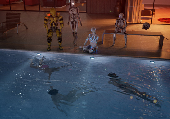 Another from my abandoned fem-bot calendar attempt. These look more human and, yes, they are water-proof.Related content