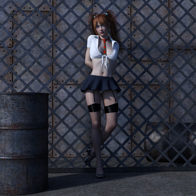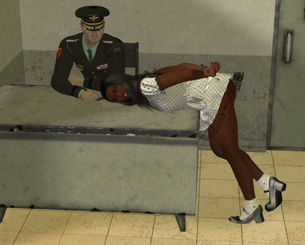 A sexy black chick in a schoolgirl outfit in bondage?