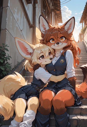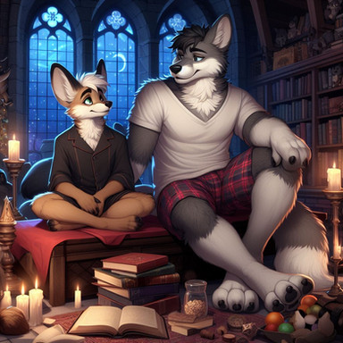 #anthro #furry #gay #boyfriend #fennecfox #friends #magic #magical #school #student #werewolf #wolf #size_difference #ai_generated #ai_artwork