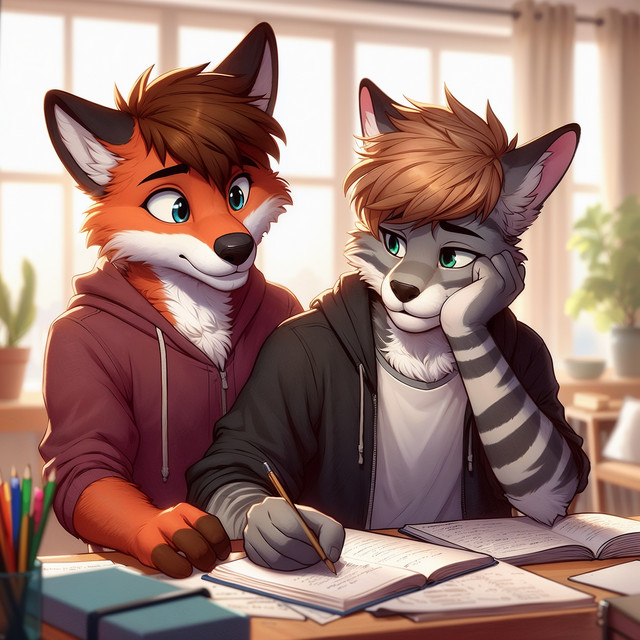 #bunny #dragon #friends #furryanthro #hare #medievalfantasy #school #student #teenager #werewolf #wolfcharacter #ai_generated_art