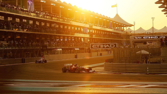 "A group of F1 cars hammering around a fast left handed corner in the warm afternoon sunlight" - bascially it is a concept showing heat, speed and light.
