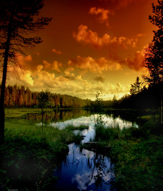 I love the sense of depth, how the cold and warm colours work together so beautifully, the silhouettes of the trees, the reflections in the water- this is just absolutely stunning