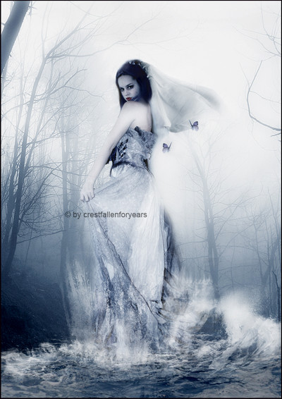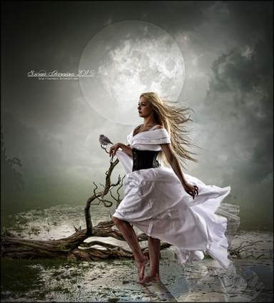 I love her dress-but i admit I am very partial to yellow! I really love the overall pose and feel of this piece, lovely work. Very ominous background! I can't say I like the white though, its taxing on the image because it distracts and contrasts the rest of it too much...