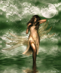 I love the soft moonlit glow.. and the pearls wrapped almost lovingly around her. The wings are very cool.. and unique. Nice work..