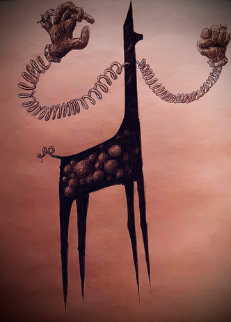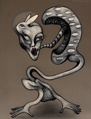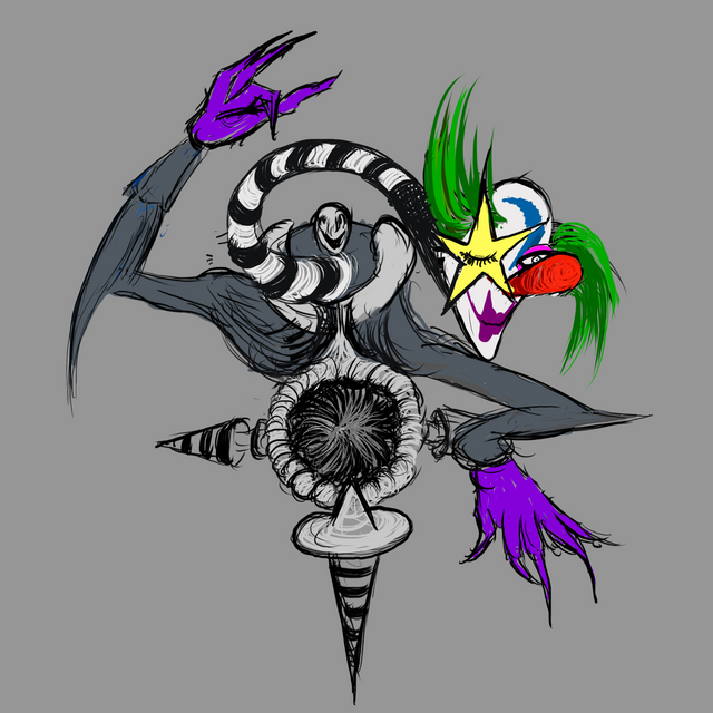 An entity confused on whether it wants to hurt or amuse you.Made with ink.