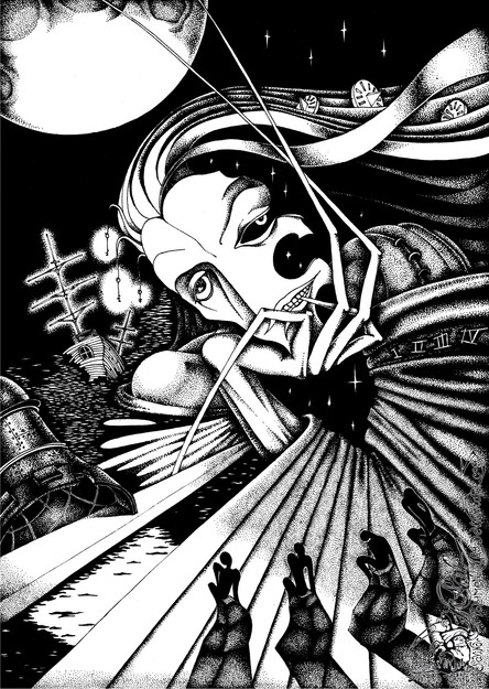 A5 Paper + Gel PenAnd another one of that series of trash fiction magazine illustrations. This time the story was built around some top secret scientific research involving: