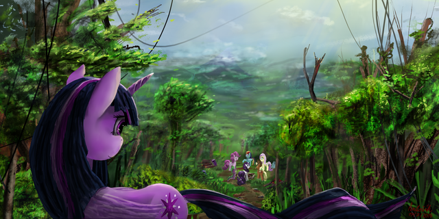 Incredible landscape. Even without a pony it would still be magnificent (don't get me wrong, the pony here is a cherry atop your faveourite icecream XD). Simply, love it.