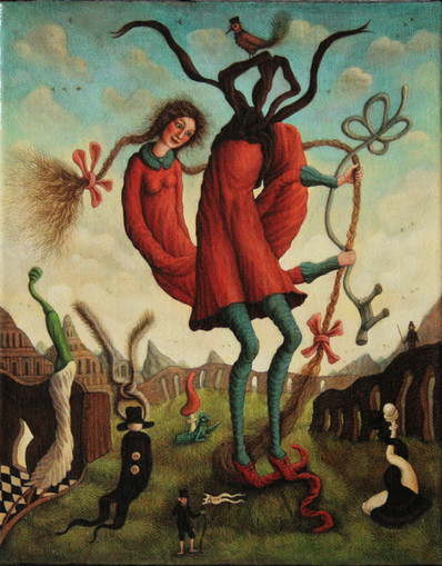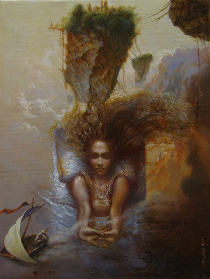 I have to admit that my english writting skills are rather bad,but despite my lack of english knowledge i have to comment your drawing, i love how you captured the female inocence and the surreal ambiance,i also like how the colors create a perfect harmony that suits the fantastic landscape,everything looks so perfect