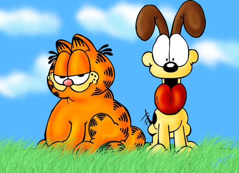 Like Garfield and Odie with their species swapped