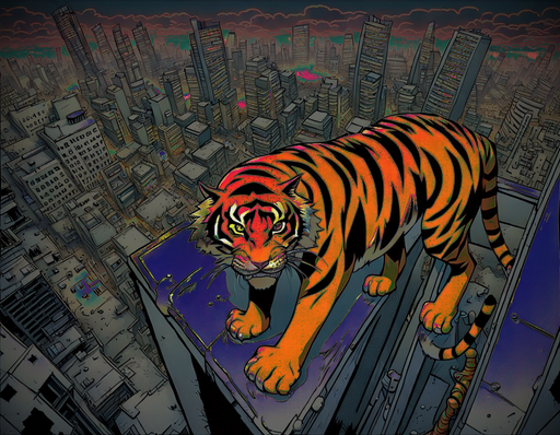 ColossalCookie - Cat sitting on a rooftop, Japanese style city back [🤖]