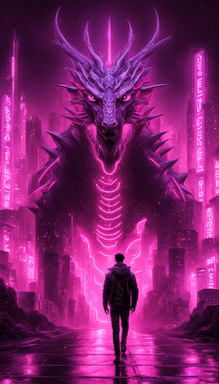 rosaWal23 - Dragon in Neon City Phone Backdrop [🤖]