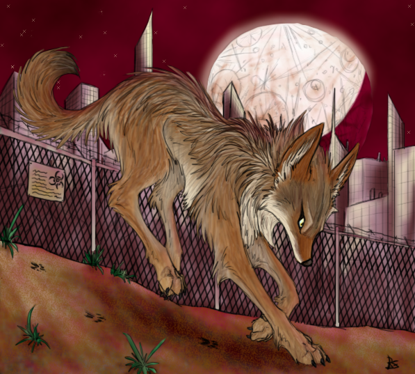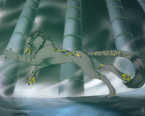 It's supposed to be a wolf-puma creature with a green mane along its back that can create portals. In that case, I have no idea why this dude in this pic here doesn't just portal his way out instead of smashing up the glass tube xP For epic effect, I guess? x3 I tried to make it look like a wolf-puma but that's hard from a front-view... I guess I coulda changed the nose, though... >_<; But thats why the paw pads are pink. Like a kitty!