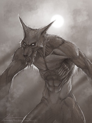 Been a while since I drew a werewolf. Or well, not just a werewolf's face. >_>Here's a sloppy attempt.