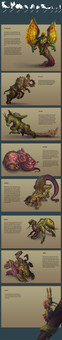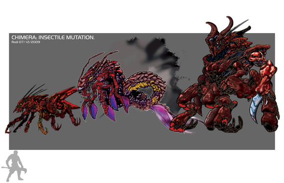 Wow your teacher didn't even bother looking at most of it!? wtf This is amazing work and I bet altogether with the board game and books its wonderful, and it sounds like it really came together nicely for such a unique board game idea. The table monster reminds me of those kiddy school desks I had in middle school down, the ones that were hallow and you shoved your crap in them ya know? lol Scary though if they suddenly grew teeth o.o The needle one is scary too and the idea of turning it into a bee like monster is perfect. Have you and your group thought about maybe publishing the game? (I really shouldn't be allowed to type comments without my glasses on -_- lol so many typos I had to fix!)