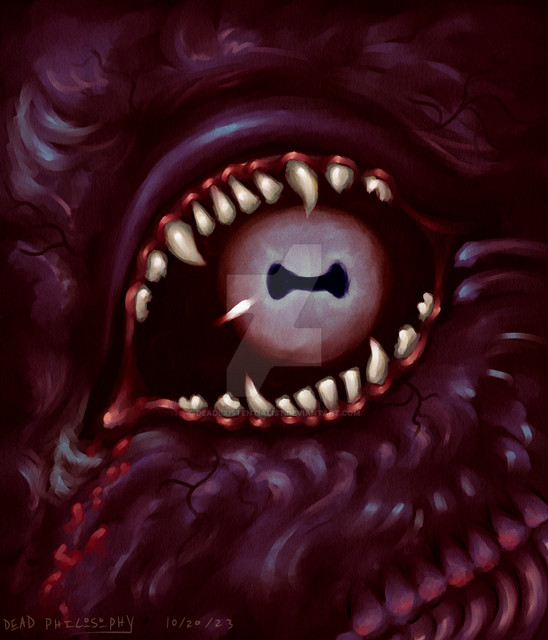 The skin is nicely organic, but what is grand here is the red flesh around the eye and the eye itself (both for having depth, whilst not being over-shaded, latter for being so wonderfully curiously white..) and the form of the hole's border.