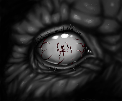 An idea I've had for a while, well this kind of eye anyways... bleeding backwards and with gravity..? I've doodled it lots of times and I thought it'd be cool to take a realistic approach to it in digital form this time.This is just a WIP, I was wondering if you guys had any input? Suggestions, like should I include more texture, less texture, define some areas, make some areas more faded, change colours, add a tint, etc.