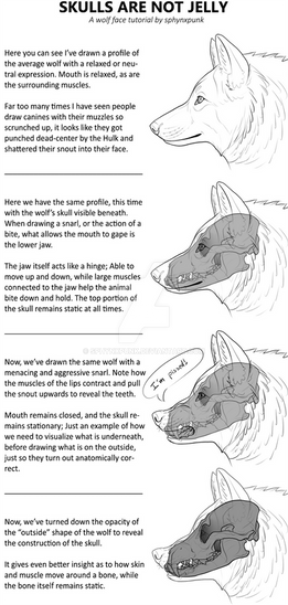 If you want to draw anatomically correct growling wolves, GO LOOK AT A PHOTO. Its much better than learning from a flawed tutorial. "