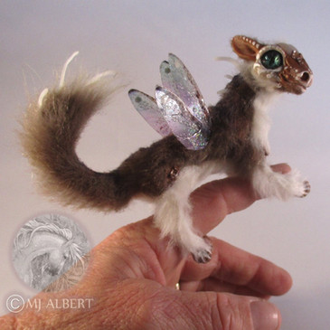This rabbit has a rose quartz crystal heart and has an very soft genuine rabbit fur coat. It sits about 9 inches tall. Haven't made a rabbit in awhile. It was a nice change.Room Guardians are small creatures that protect one's home from negative spirits and energies. These friends can be easily placed on window sills, kitchen shelves, dressers, or wherever to keep watch over the room. Each guardian has a genuine rabbit fur coat and each is individually sculpted from the wire frame to the clay face and hands, so no two are alike. The room guardians' arms, tails, and necks are bendable and Inside each of their chests is a unique crystal heart to give each one a different energy. These little guys have a lot of character and they love having a home to watch over.